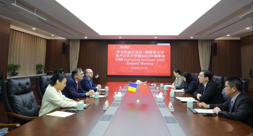 11月12日,罗马尼亚克卢日巴比什-博雅依大学校长阿德里安·彼得鲁塞尔(Prof. Dr. Adrian Petrusel)率团访问我校并出席克卢日孔子学院2025年度理事会。校长陈建孟接待代表团一行。副校长李其朋主持召开孔子学院理事会。