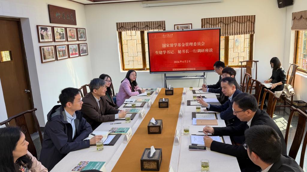 4月2日,国家留学基金管理委员会秘书长生建学一行来校调研。浙江省教育厅国际处负责人陪同调研。校长陈建孟、副校长李其朋参加调研座谈会。